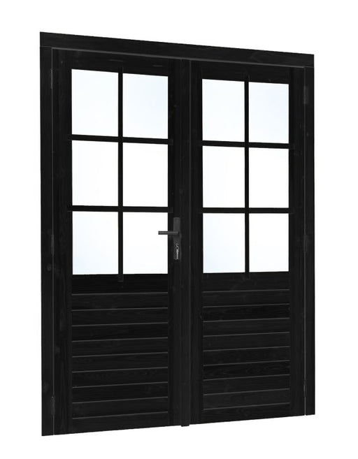 Vuren dubbele glas deur 6-ruits zwart gespoten B1850xH2050mm buitenmaat, linksdraaiend