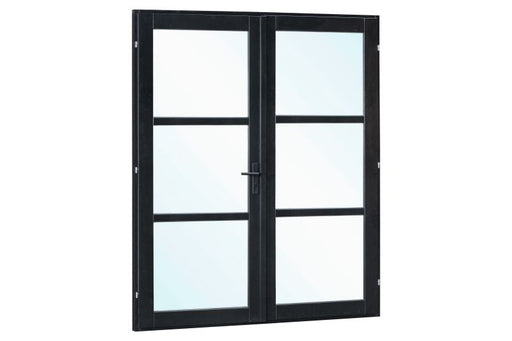 Vuren steellook dubbele glas deur zwart gespoten B2050xH2120mm buitenmaat, linksdraaiend